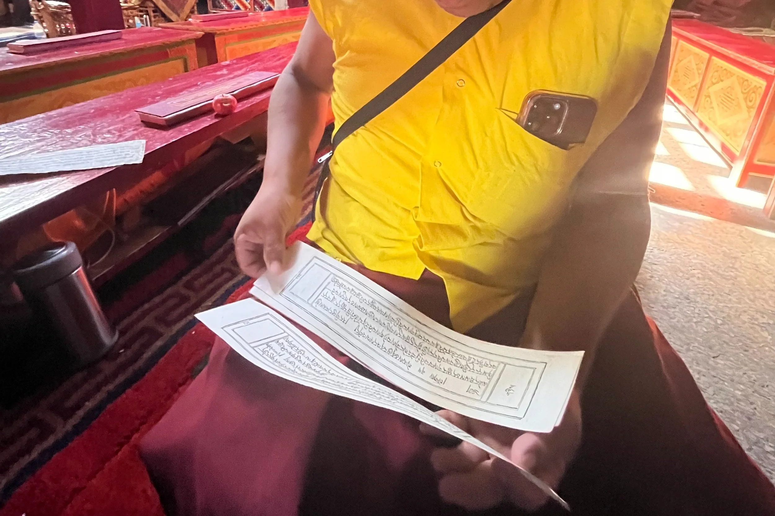 Pages of the Bible, translated by Looey and brought as a gift for the Buddhist monks.